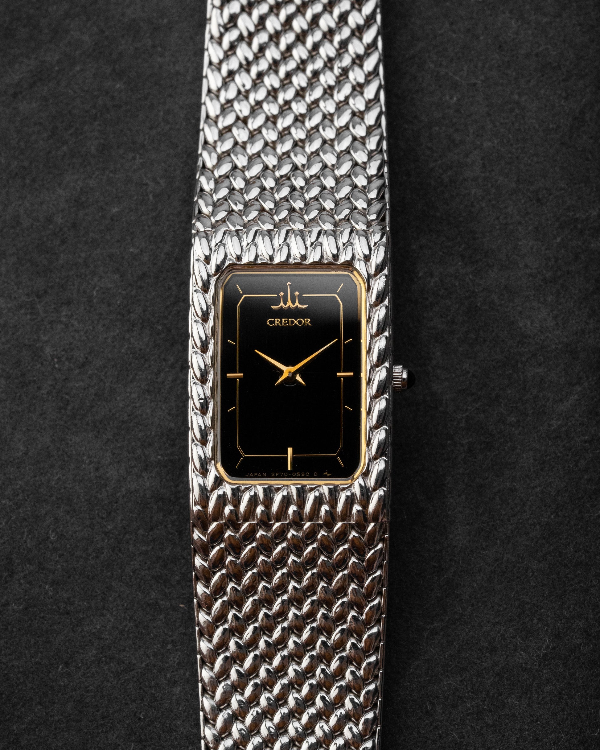 Credor Seiko Rectangular Black dial Ref. 2F70-5340 (Full Set)