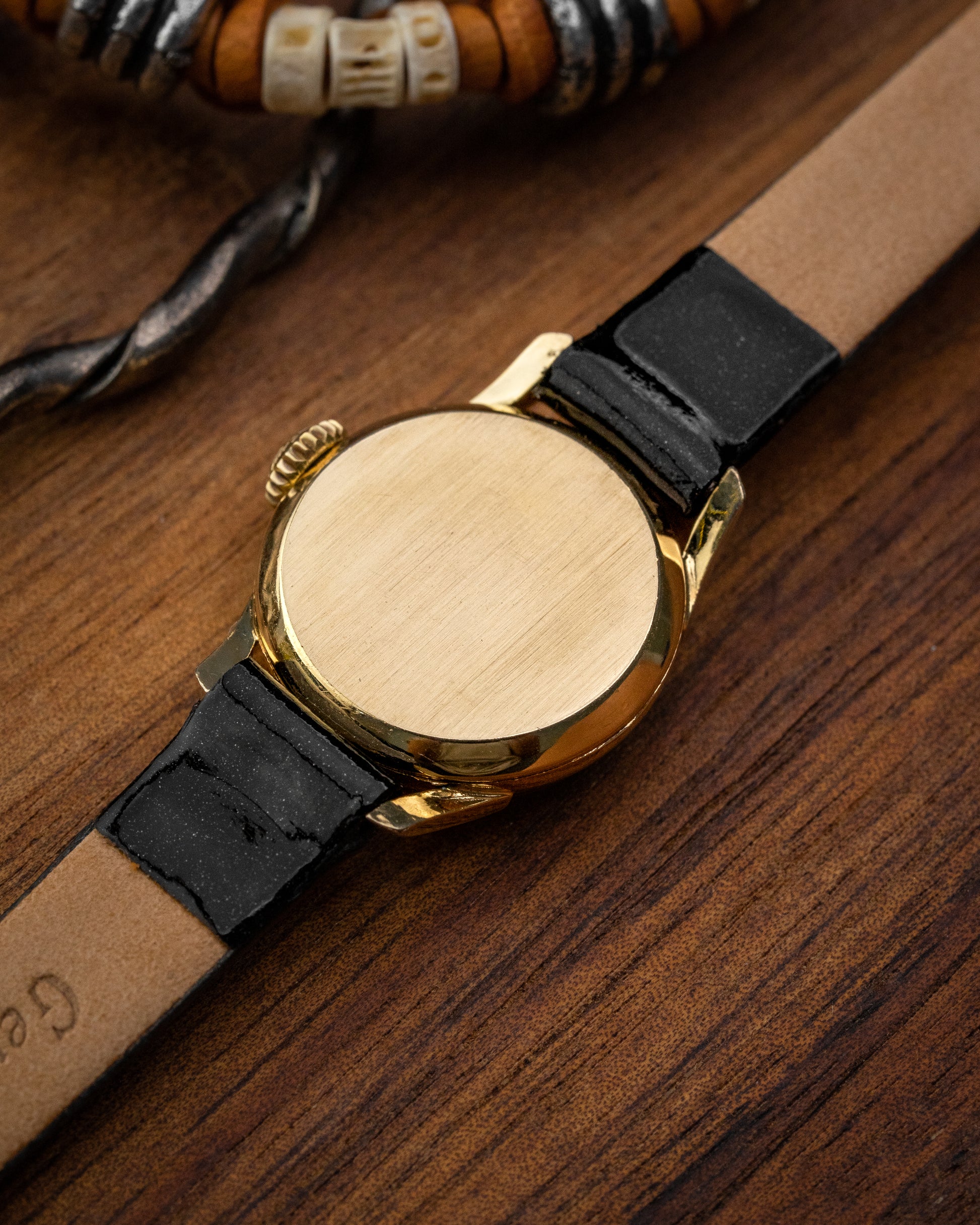 Presenting this petite Longines ladies’ watch from 1958, beautifully preserved through time. Its ornate helical lugs draw strong inspiration from the Art Deco era, adding a distinctive charm. The dial tells its own story with a thoughtful mix of markers, stick indices at the quarters, teardrop indices for the hours in between, and a solitary Arabic numeral marking for twelve and mounted a pair of Alpha hands. Deceptively simple at first sight, yet its charm reveals itself in the finer details. The case is gold plated with a thicker 80-micron finish.