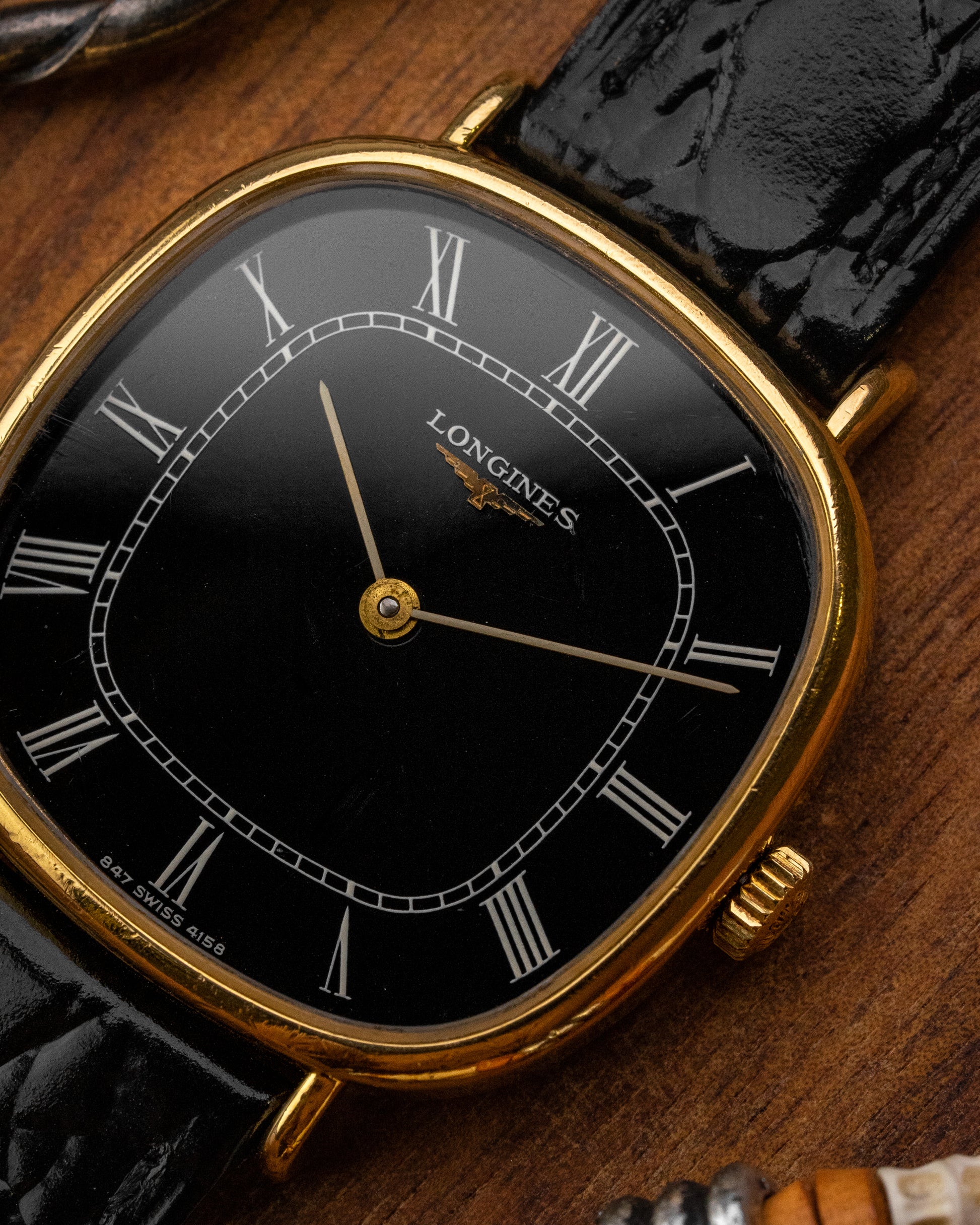 Longines Square "Cushion" Black Roman dial Gold Ref. 4158 (Cal. 847.4)
