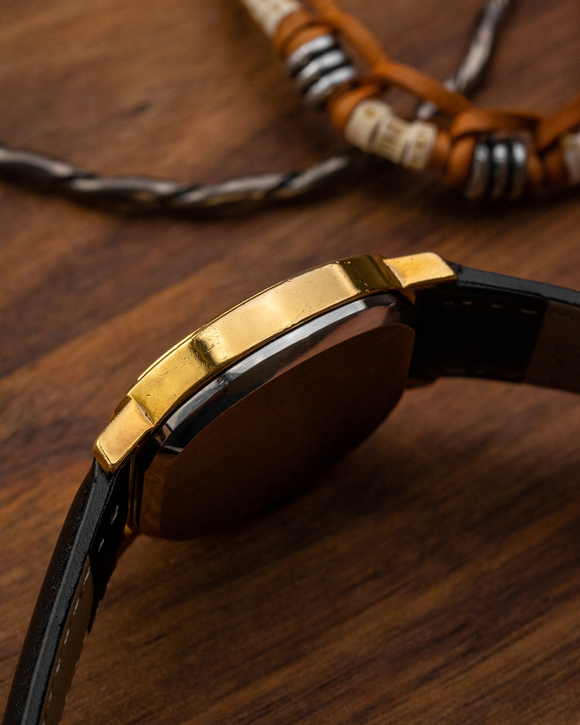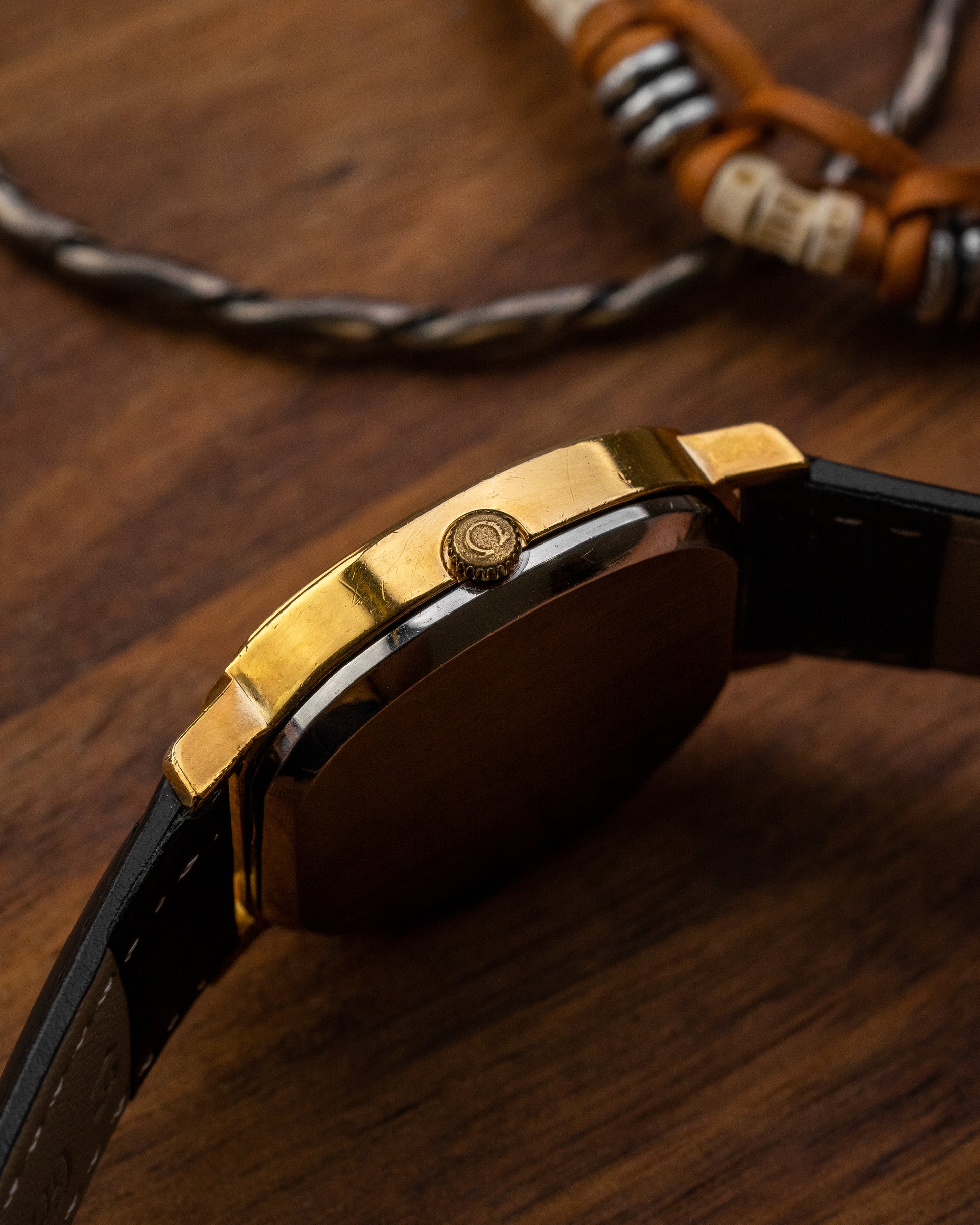 Presenting this De Ville from 1973 housed in an elliptical shape case with a warm champagne dial. Its minimalist design is defined by slim baton indices, long stick hands and a neatly framed date window at 6 o’clock offering perfect visual symmetry. Beating within is the newer Cal. 1012, featuring a higher beat rate at 8bps, conventional quickset date and a second hacking feature. Completing the piece is a mineral glass crystal that sits seamlessly flush with the bezel.