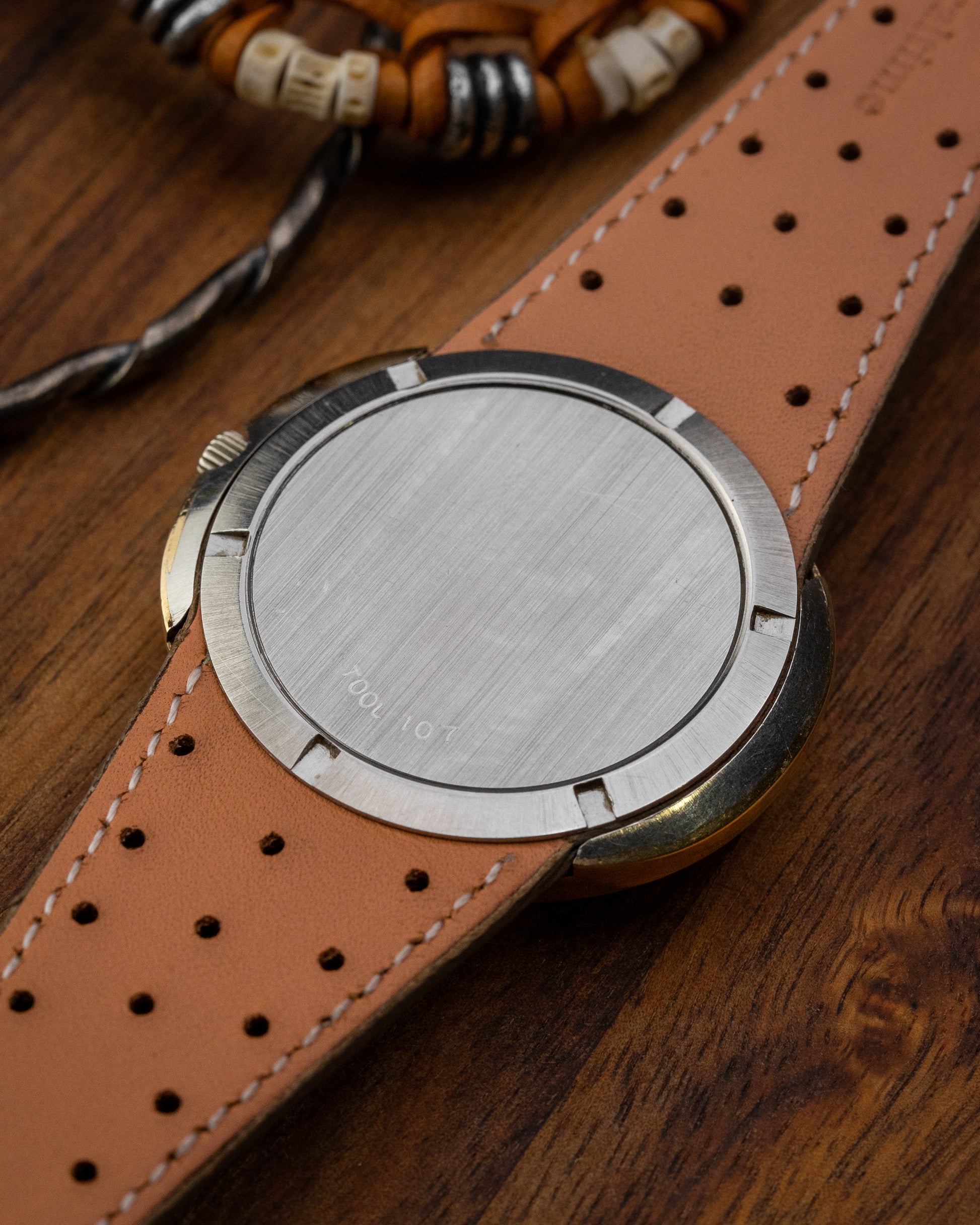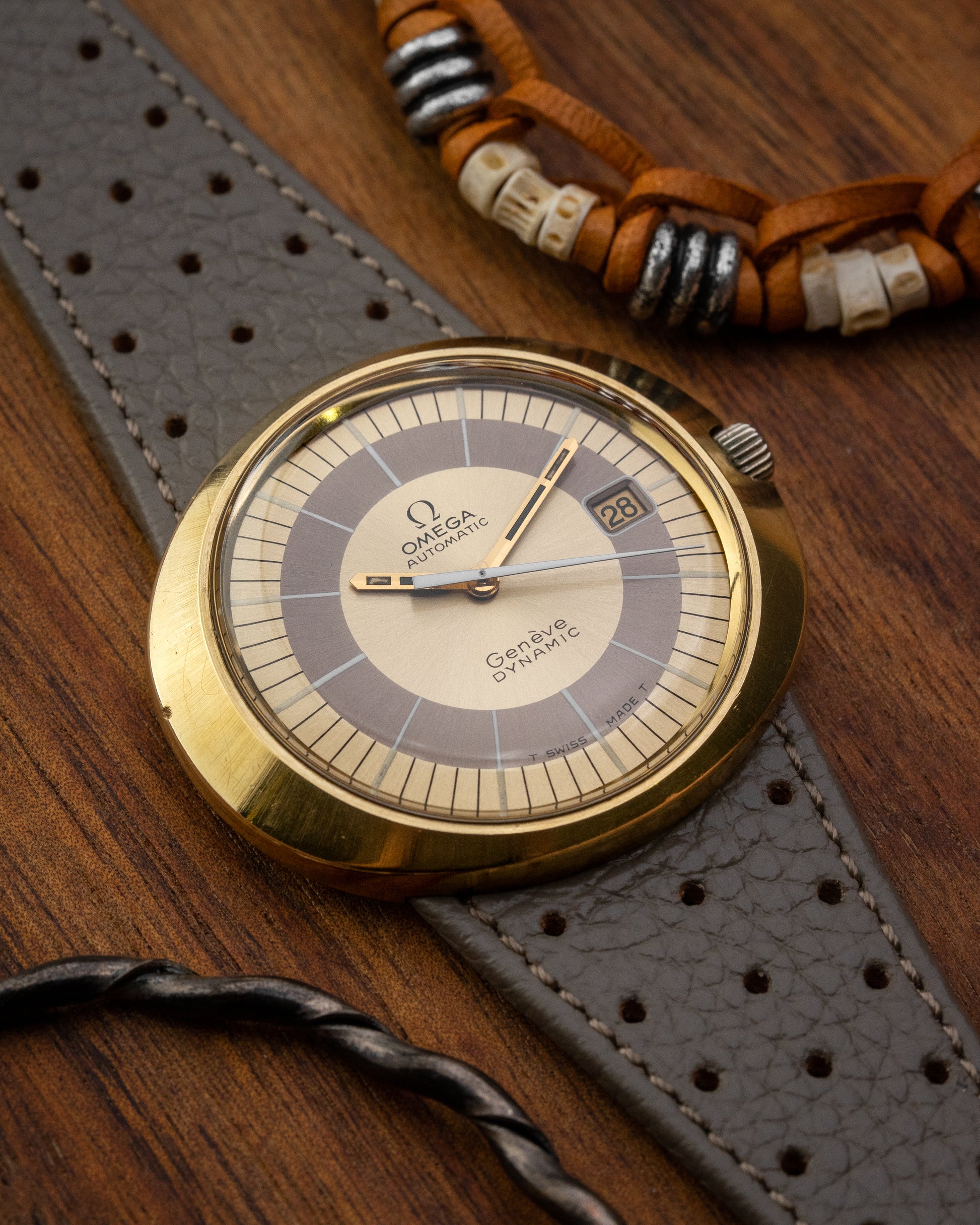 Throwback to 1968, when Omega unveiled a radical and eccentric design that pushed the boundaries of traditional watch design, most notably with a case shape that resembles a flying saucer from nearly every angle. This particular model dates back to 1970, an early variation of the Genève Dynamic line. Gold capped case housed a reliable in house automatic caliber with a quickset date function activated by pulling the crown to its outermost position. I like to think this is how Omega in the '70s imagined wrist fashion in the year 2070 while sketching the Dynamic’s design. It’s a striking blend of vintage charm and futuristic flair, arguably one of the boldest designs ever produced by the brand.