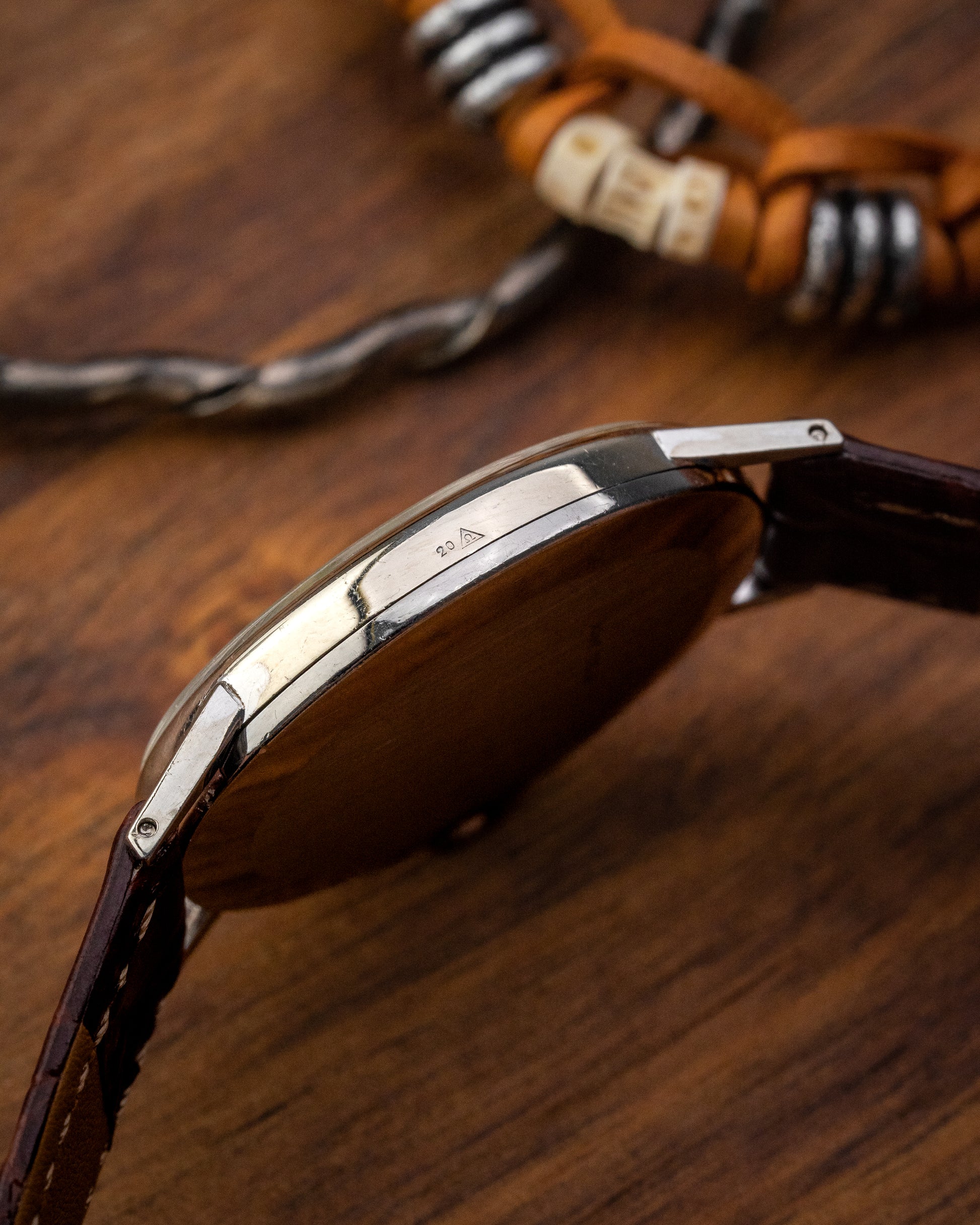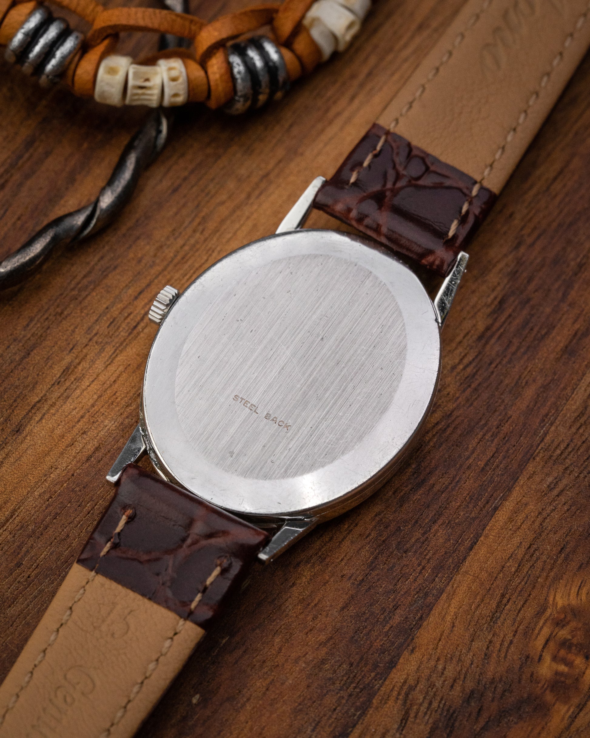 Presenting this intriguing yet understated Omega Genève from 1972, housed in a white gold-plated oval case that takes on an egg-like silhouette from afar. Its Roman numeral dial paired with elegant feuille hands completes the design, making this a chic and slender timepiece perfect for everyday wear.