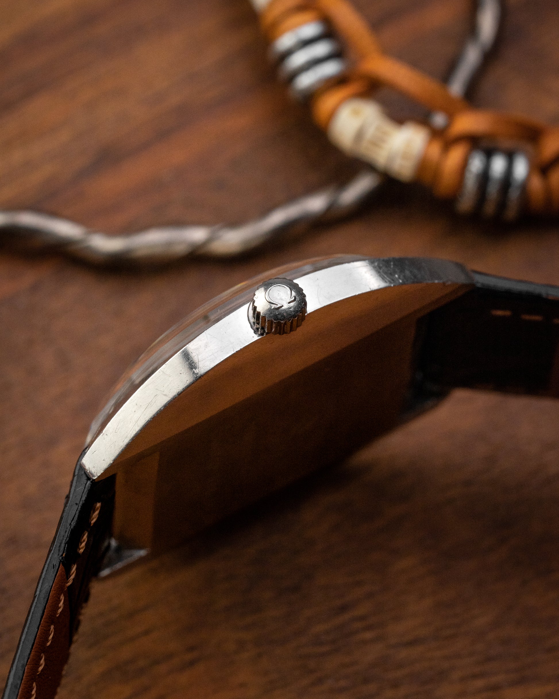 Presenting this Seamaster Cosmic, distinguished by its iconic C-shaped case popularised by Gérald Genta. Housing a manual winding caliber with a quickset date function activated by pulling the crown to its outermost position. Showcasing a lume-free sunburst dial preserved in absolutely pristine condition, nothing gets better than this.