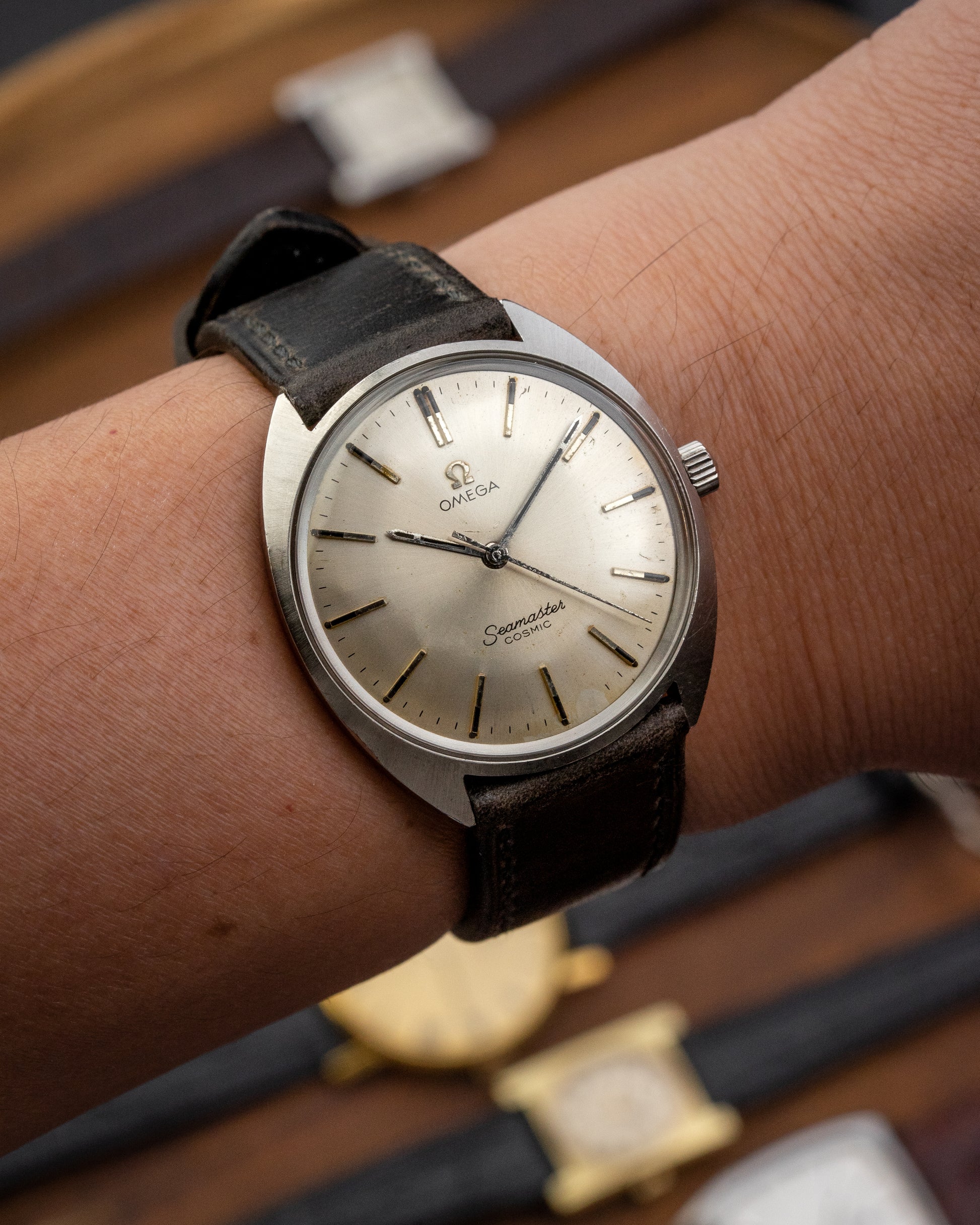 Presenting this Seamaster Cosmic with a rugged and rustic dial and some war marks on it. Distinguished by its iconic C-shaped case popularised by Gérald Genta and housing a manual winding time-only caliber. Though the dial is in a beater condition, the movement is freshly serviced and running in good condition. For those who do not mind and appreciate a patinated dial with some battle scar, this is for you at a very good price.